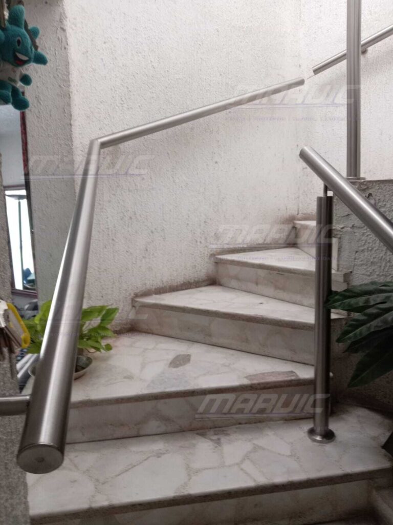 PASAMANOS EN TUBO REDONDO DE 2″, 1 1/2″ TUBO CUADRADO 2″ RECTANGULAR DE 2X1 Y EN SOLERA, ANCLADO A MURO.